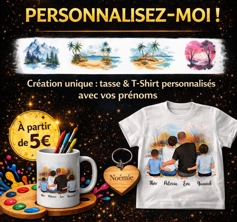 Vivez des moments enchantés grâce à nos créations personnalisées sur textile, objets,
